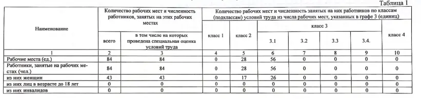 Сводная ведомость результатов проведения СОУТ
